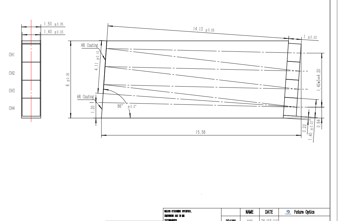 富光科技为客户提供从膜系设计开炉到输入输出光耦合的一站式服务,包括:根据客户TOSA\ROSA参数提供BLOCK设计和仿真;根据客户使用环境提供针对性容差分析和优化;根据客户模块空间尺寸提供Z-BLOCK到LD\PD之间的光口位置和pitch值提供定制服务。